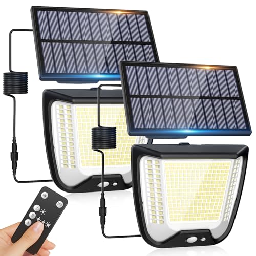 LOTMOS Solar Lights Outdoor, 342LED Remote Solar Security Lights Outdoor Motion Sensor, 2 Pack 3 Modes Garden Light Solar Powered Waterproof Pir Flood Lighting for Yard Shed Garage Outside,Cool White