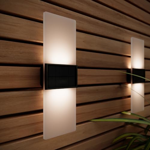 SolarCentre® Gemini Set of 2 White & Warm White Outdoor Solar Powered Wall Lights (20cm)