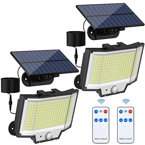 LOTMOS Solar Lights Outdoor, 342LED Remote Solar Security Lights Outdoor Motion Sensor, 2 Pack 3 Modes Garden Light Solar Powered Waterproof Pir Flood Lighting for Yard Shed Garage Outside,Cool White