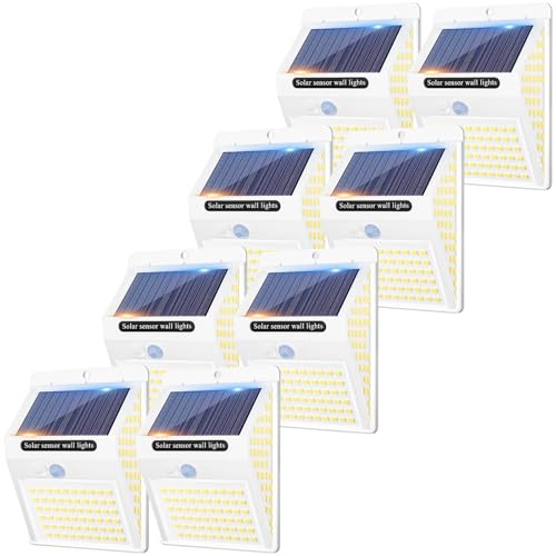 litogo [8 Pack] 140LED Solar Security Lights Outdoor, Solar Motion Sensor Lights 270ºWide Angle Waterproof Solar Powered Durable Wall Lights Outside 3 Modes for Garden Fence Door Yard,Warm White
