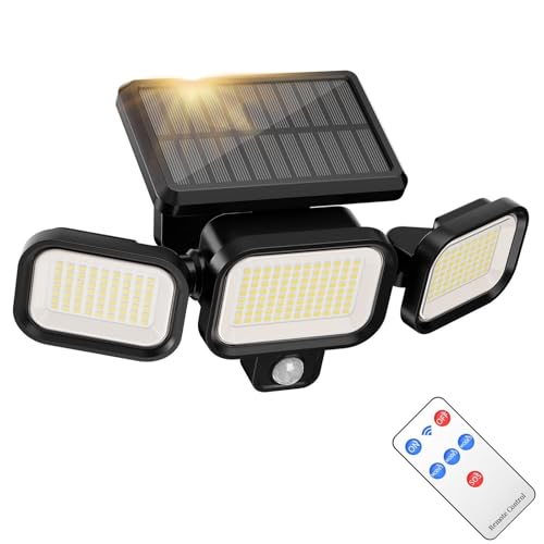 Peasur Solar Security Lights Outdoor Motion Sensor, 3 Modes Solar Powered Flood Light with Remote Control 3 Adjustable Heads, IP65 Waterproof Wall Mount Wireless for Yard Garage Patio Porch
