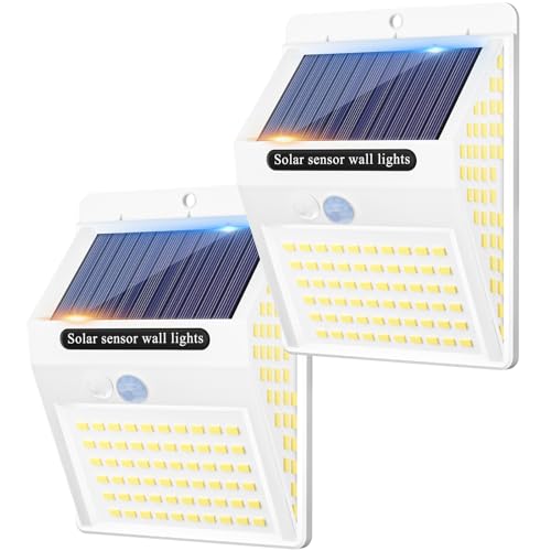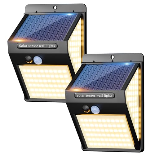 LEIORIO Solar Lights Outdoor, Solar Security Lights Outdoor Motion Sensor 202 LED 3 Modes 270° Wide Angle Solar Garden Lights IP65 Waterproof Solar Wall Light for Front Door, Garage, Fence (2 Pack)