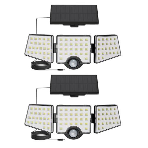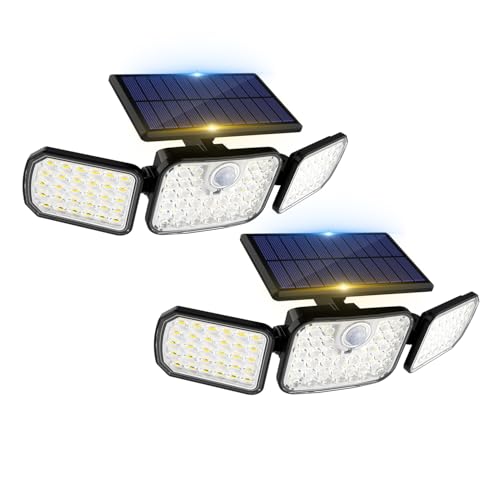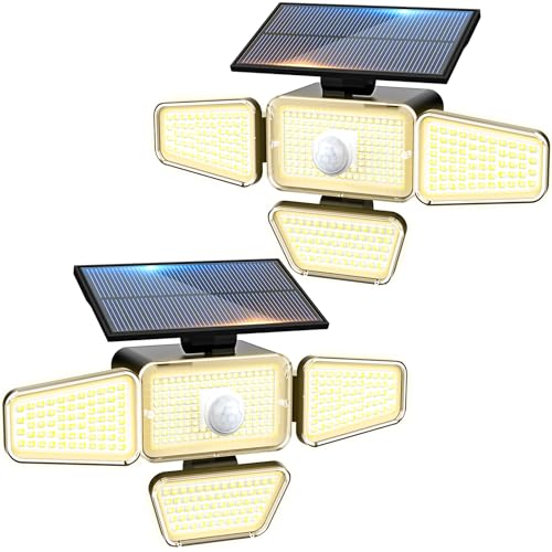 Peasur 318LED Warm White Solar Security Lights Outdoor Motion Sensor, 4 Adjustable Heads Solar Lights Outdoor Garden, Waterproof Wall Mount Wireless Solar Powered Flood Light-2 Pack