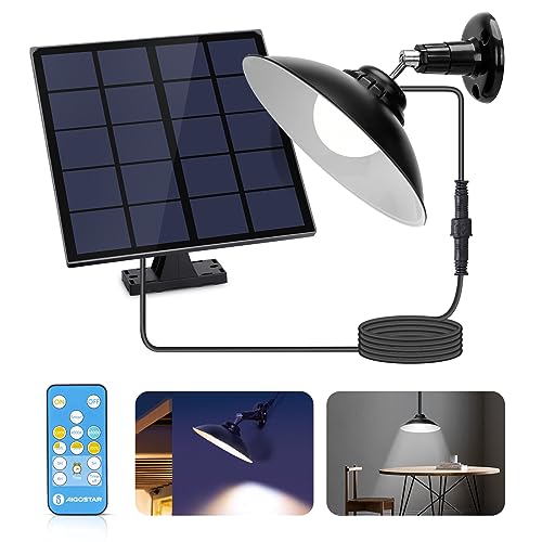 Aigostar Solar Shed Light with Remote Control, 50W Solar Wall Light, Dimmable Solar Pendant Light, IP65 Waterproof Solar Security Motion Sensor Lights for Outdoor Indoor Home Yard Barn Gazebo Patio