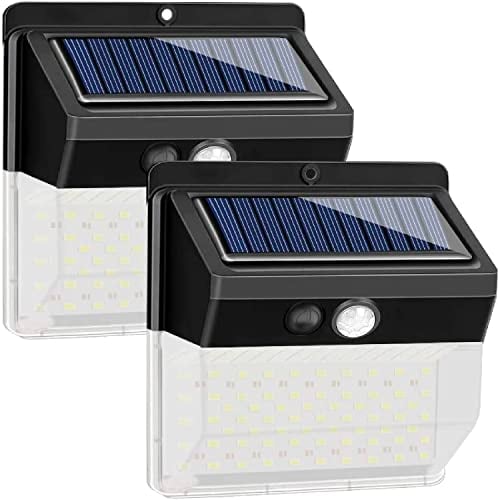 litogo [2 Pack White Frame 140LED Solar Security Lights Outdoor, Solar Motion Sensor Lights 270ºWide Angle Waterproof Solar Powered Durable Wall Lights Outside 3 Modes