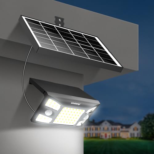 intelamp Solar Security Flood Lights Outdoor Motion Sensor with Remote Control,Waterproof Outdoor Solar Light, 6000mAh Battery Solar Security Light 3-Meter Cable Outdoor Wall Lights for Garden