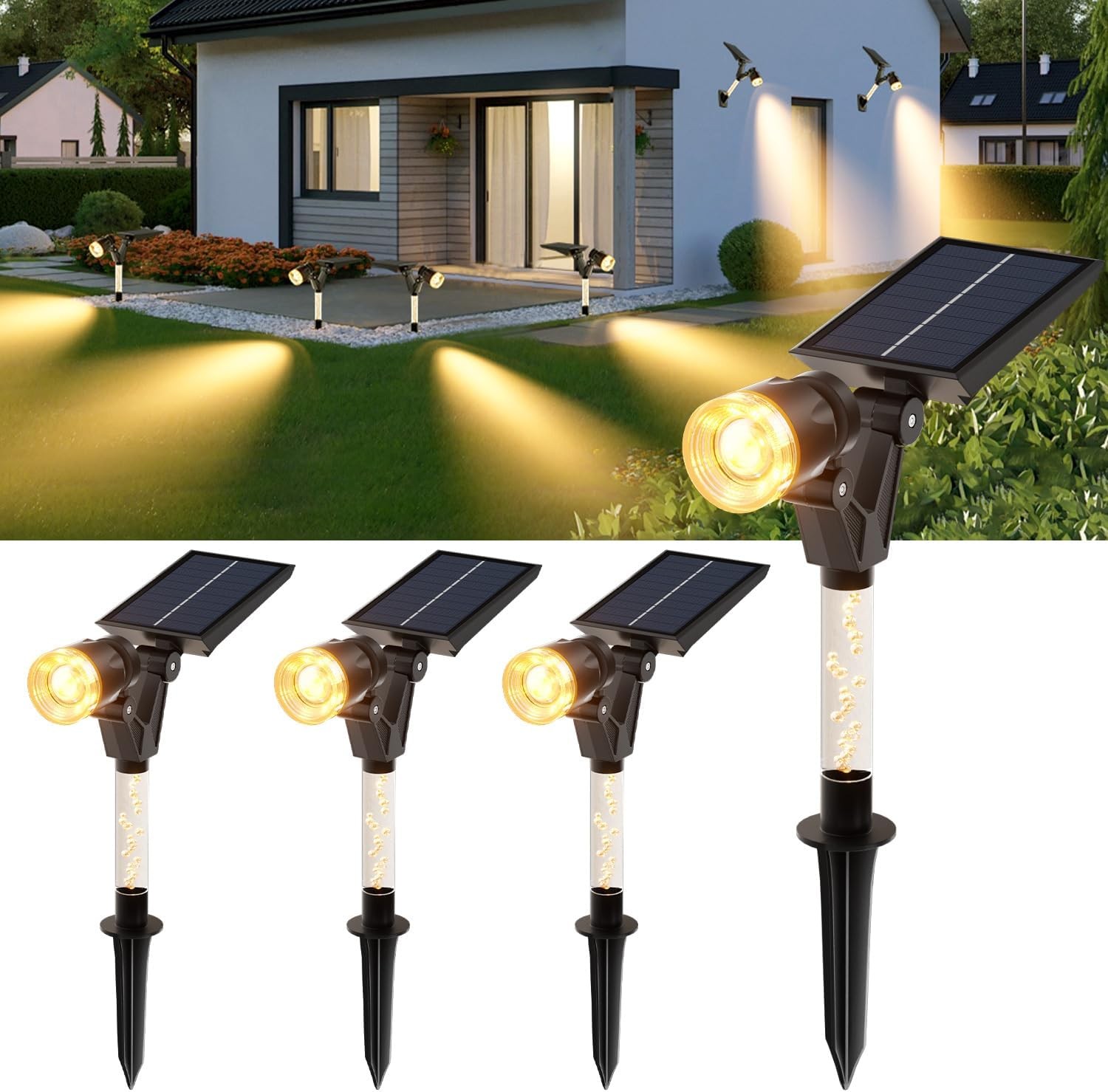 Linke Solar Spot Lights Outdoor Garden, 4 in 1 3000K Warm White LED Solar Powered Spotlight IP66 Waterproof Landscape Spotlights Fence Lights for Pathway Yard Lawn Tree Statue