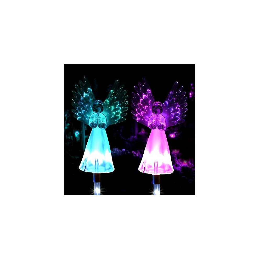2Pack Garden Solar Lights Outdoor, Waterproof Solar Angel Stake Lights with Luminous Lamps Wings Multi-Color Changing LED Solar Lights for Outdoor
