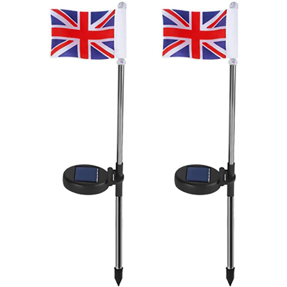 (British Flag) 2PACK United Kingdom/American Flag Solar Garden Stake Lights Waterproof UK/US Flag Solar Lights Decorative Pathway Lights Garden Yard D