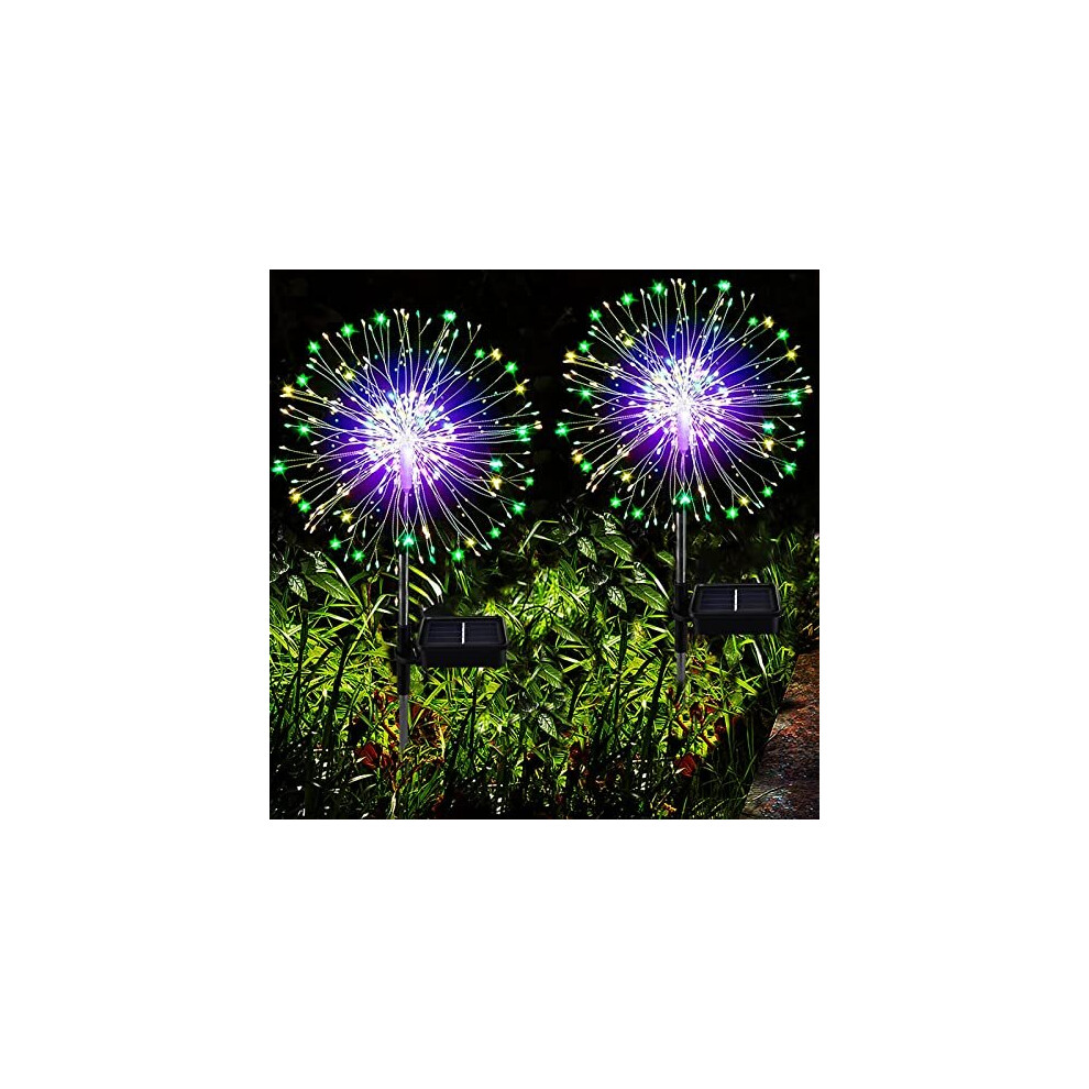Joycome Solar Firework Lights 2 Pack 120 LED Solar Garden Lights, 8 Light Modes Solar Christmas Lights Outdoor Waterproof Solar Starburst Stake Lights