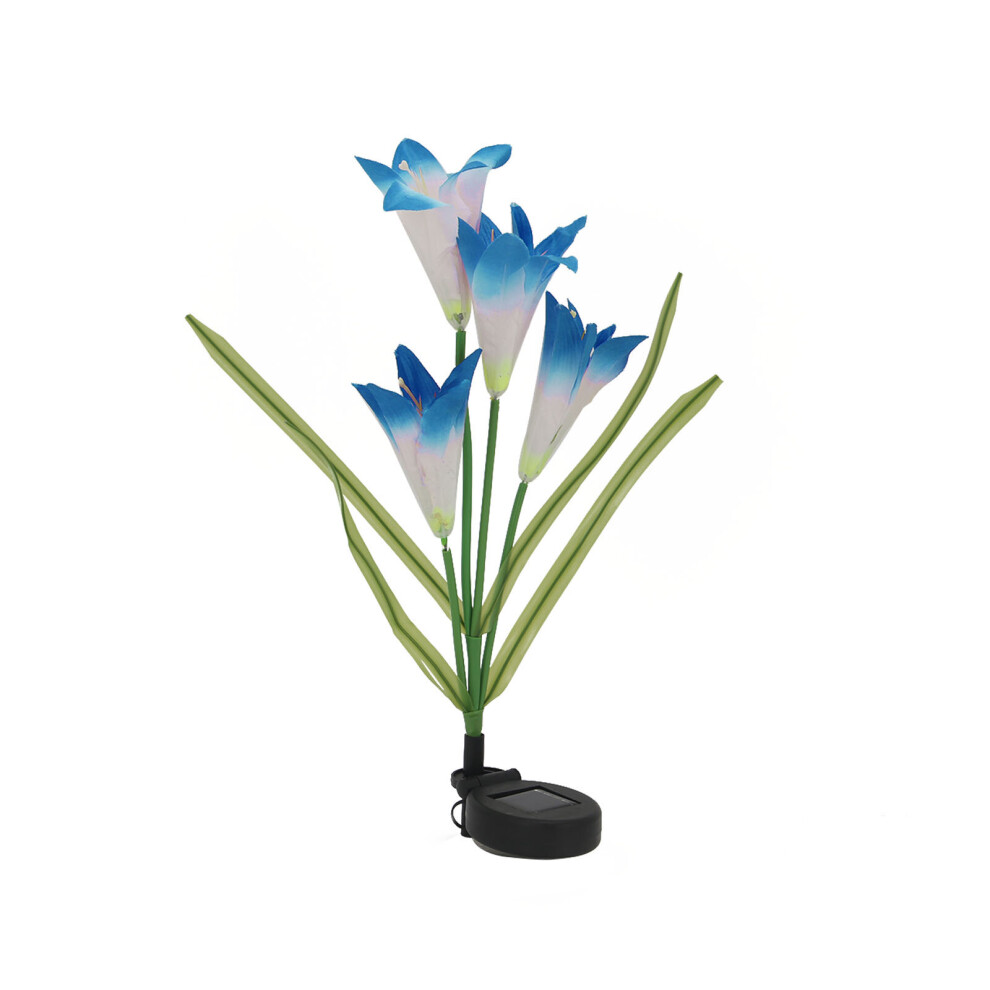 (Blue) 4 LED Solar Power Flower Stake Lights Lamps