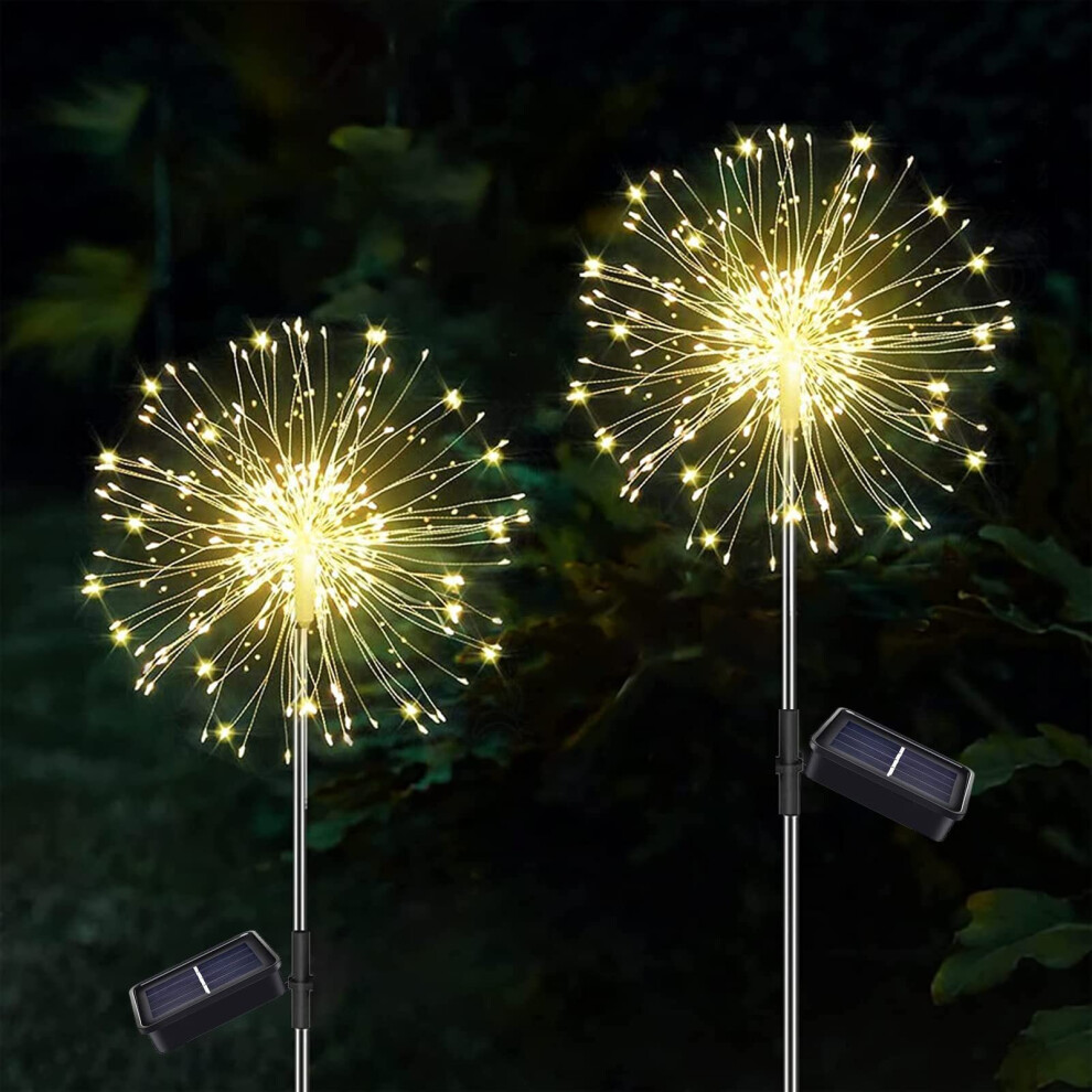 Yowin 2 Pack Solar Firework Lights 120 LED Solar Garden Stake Lights, 8 Modes Solar Starburst Lights Outdoor Waterproof Solar Pathway Lights for Patio