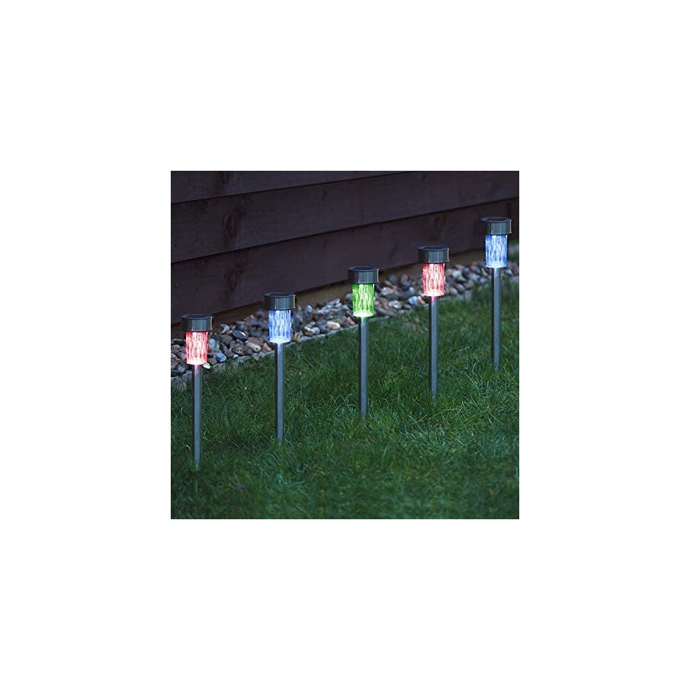 10 x CUQOO Colour Changing Solar Garden Stake Lights - Rechargeable LED Solar Powered Garden Lights - Waterproof Outdoor Lamps - Stainless Steel