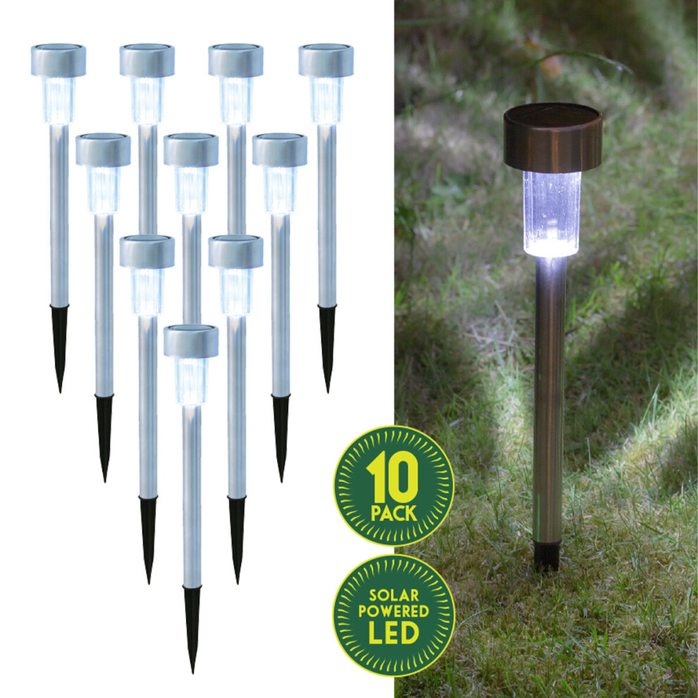 GardenKraft 17680 10-Pack Solar Stake Bollard Lights / Bright White