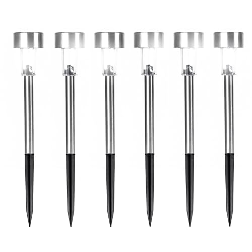 Status Solar Stake Lights, Pack of 6 Stainless-Steel 5.5cm White-LED Garden Path Lamps, IP44 Weatherproof with Rechargeable Batteries Included (MELBOURNESS6PK3)