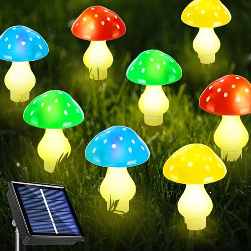 Eidoct Mushroom Solar Lights Outdoor Garden, Solar Powered Mushroom Stake Lights for Outdoor Decor, Solar Powered Waterproof, 8 Lighting Modes (8 Mushrooms)