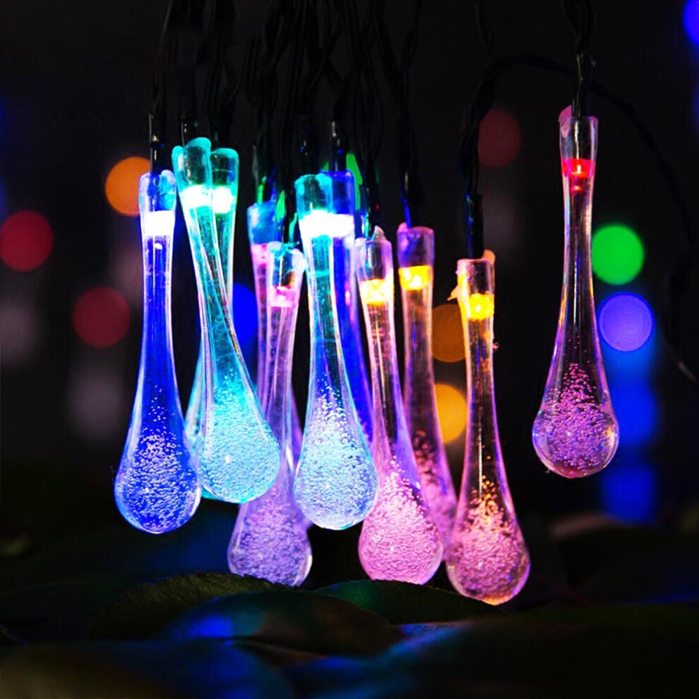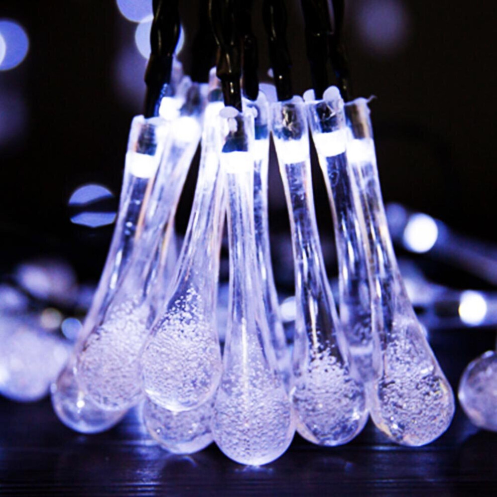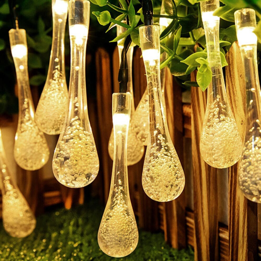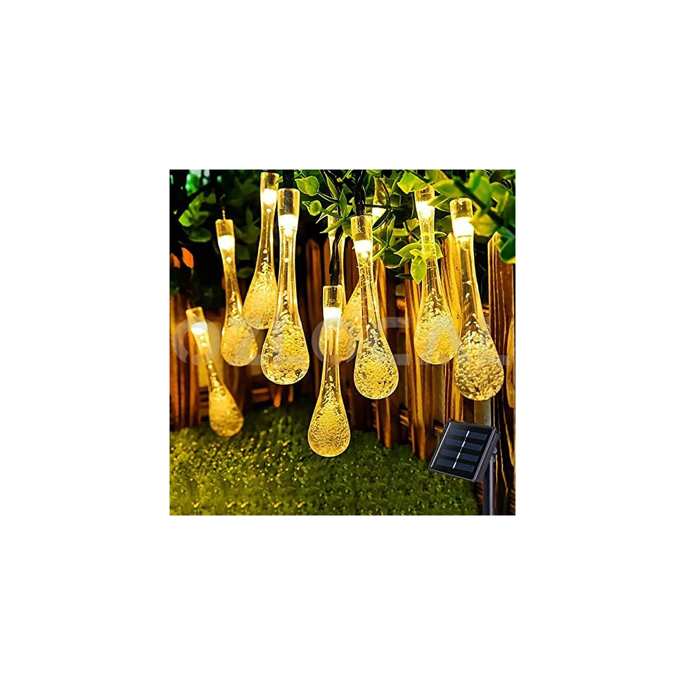 Solar Garden String Lights Outdoor, 20 LED Solar Crystal Raindrop Fairy Lights, 4.8M Waterproof Teardrop Lamp Decorative Lighting for Terrace Fence