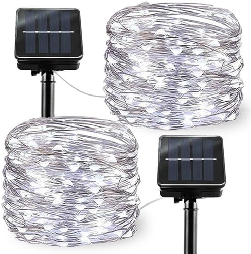 FANSIR Solar Powered String Lights, 2 Pack Outdoor String Solar Garden Fairy Lights Waterproof 23ft 8 Modes 50 LED Copper Wire Decorative Lights for Garden Patio Yard Home Wedding Party (Cool White)