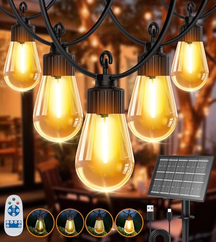 Solar Festoon Lights Outdoor,15M/50FT Solar Powered Garden String Lights with Remote, 20 Shatterproof IP65 Waterproof S14 Bulbs,Dimmable,4 Modes Outside Lights for Gazebo Graden Backyard