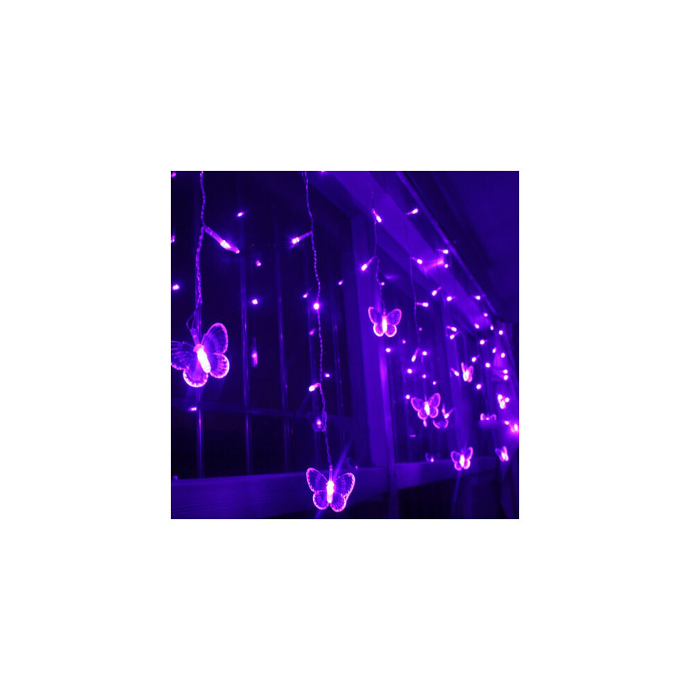 (Purple 3.5M 96LED Butterfly) LED Solar Garden String Lights Butterfly Multicolour Waterproof Outdoor