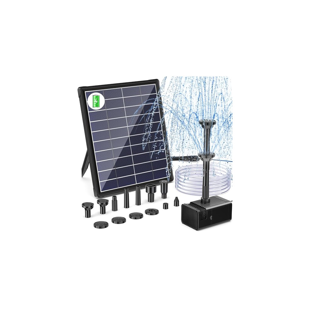 Biling 6W Solar Water Pump with 3000mAh Battery Backup 10 Nozzles Solar Pond Fountains Water Features for the Garden with 5ft Tubing for Bird Bath,