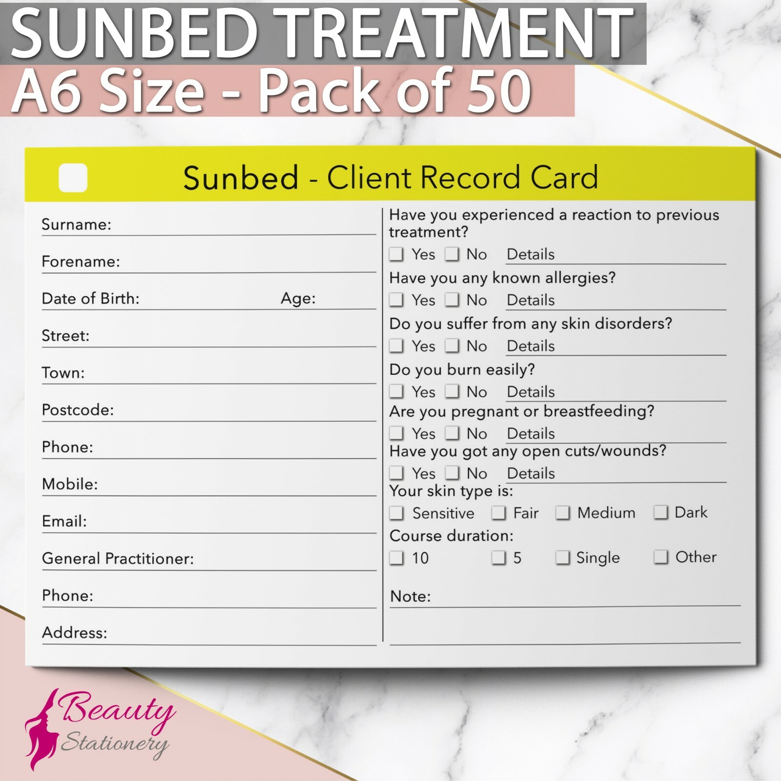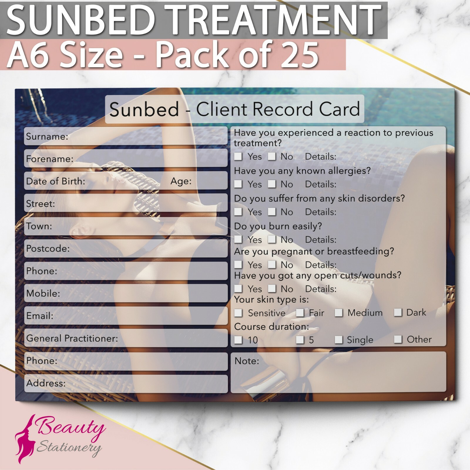 Sunbed Client Record Card Solarium Tanning Consultation Treatment Salon A6 x200