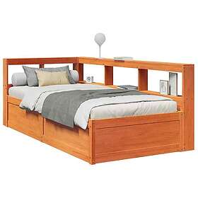 vidaXL Bookcase Bed without Mattress Wax Brown 90x190cm Solid Wood Pine