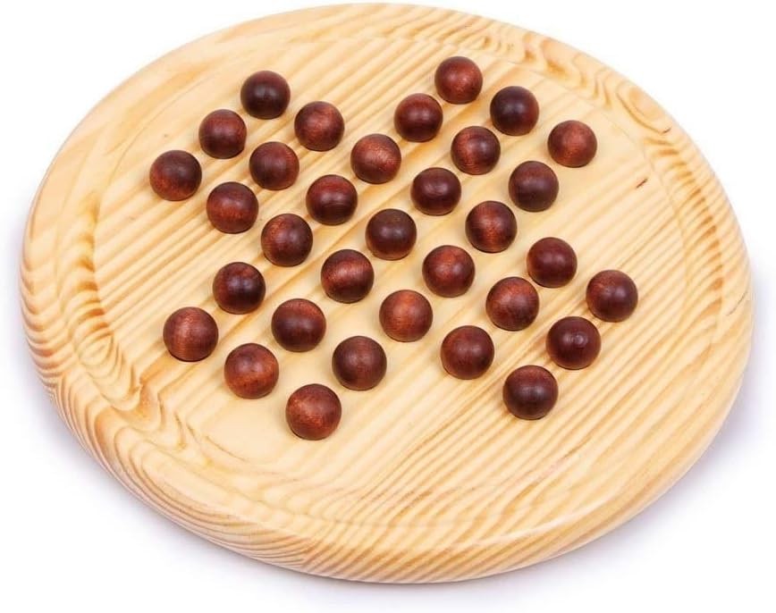 Deluxe Solitaire Game Set: 12.6'' Solid Wooden Board, 32 Natural Marble Balls, Single-Player Strategy and Smart Games