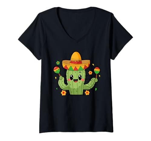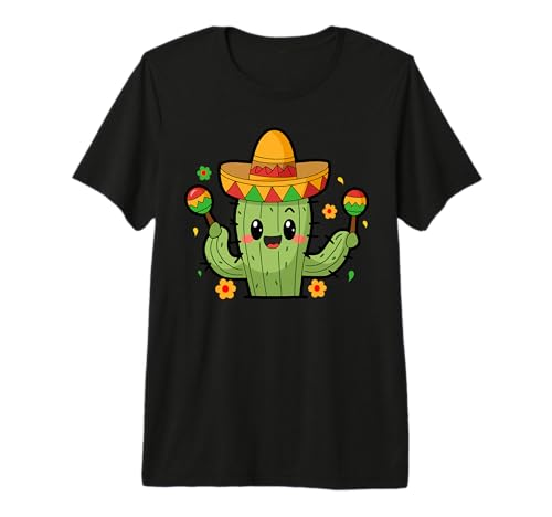Cute Mexican Fiesta Cactus with Colorful Sombrero T-Shirt