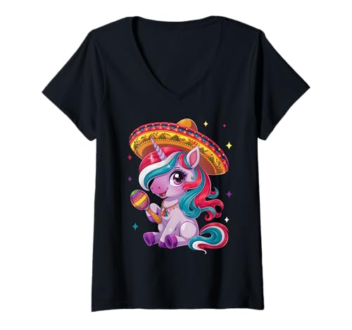 Women's Unicorn Sombrero V-Neck T-Shirt