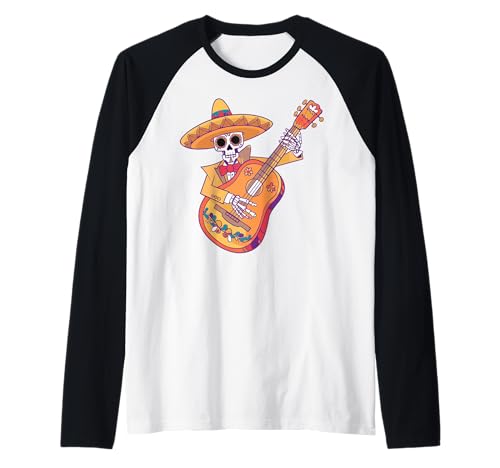 Sombrero Skeleton Guitar Raglan Baseball Tee