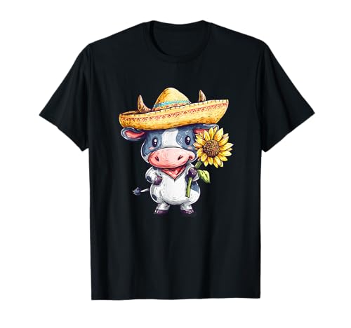 Kawaii Sombrero Cow with Sunflower Fiesta T-Shirt