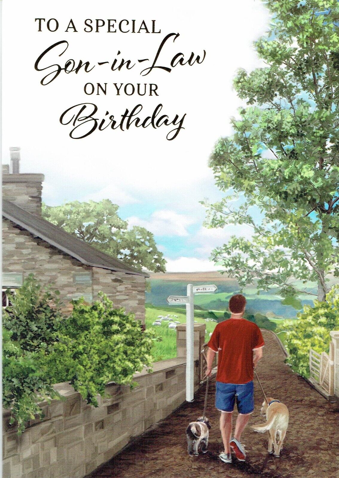 Special SON-IN-LAW BIRTHDAY CARD - Quality card Walking The Dog Design