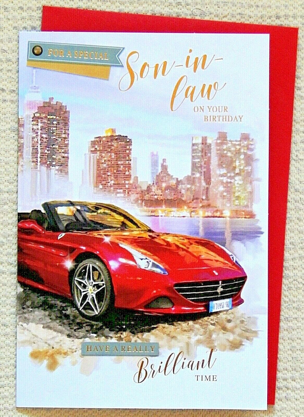 Special Son In Law Birthday Card Car Themed Design Nice Verse UK 7"x5"
