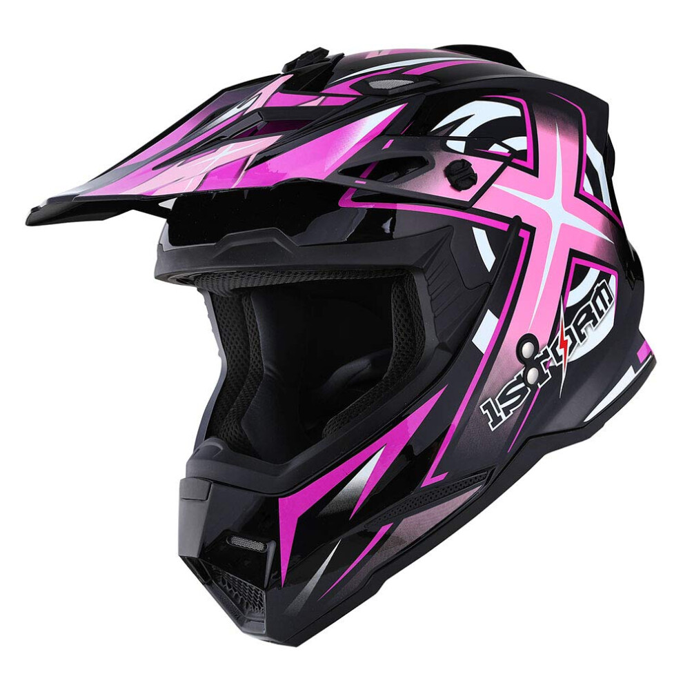 1Storm Adult Motocross Helmet BMX MX ATV Dirt Bike Four Wheeler Quad Motorcycle Full Face Helmet Racing Style: HF801 Sonic Pink