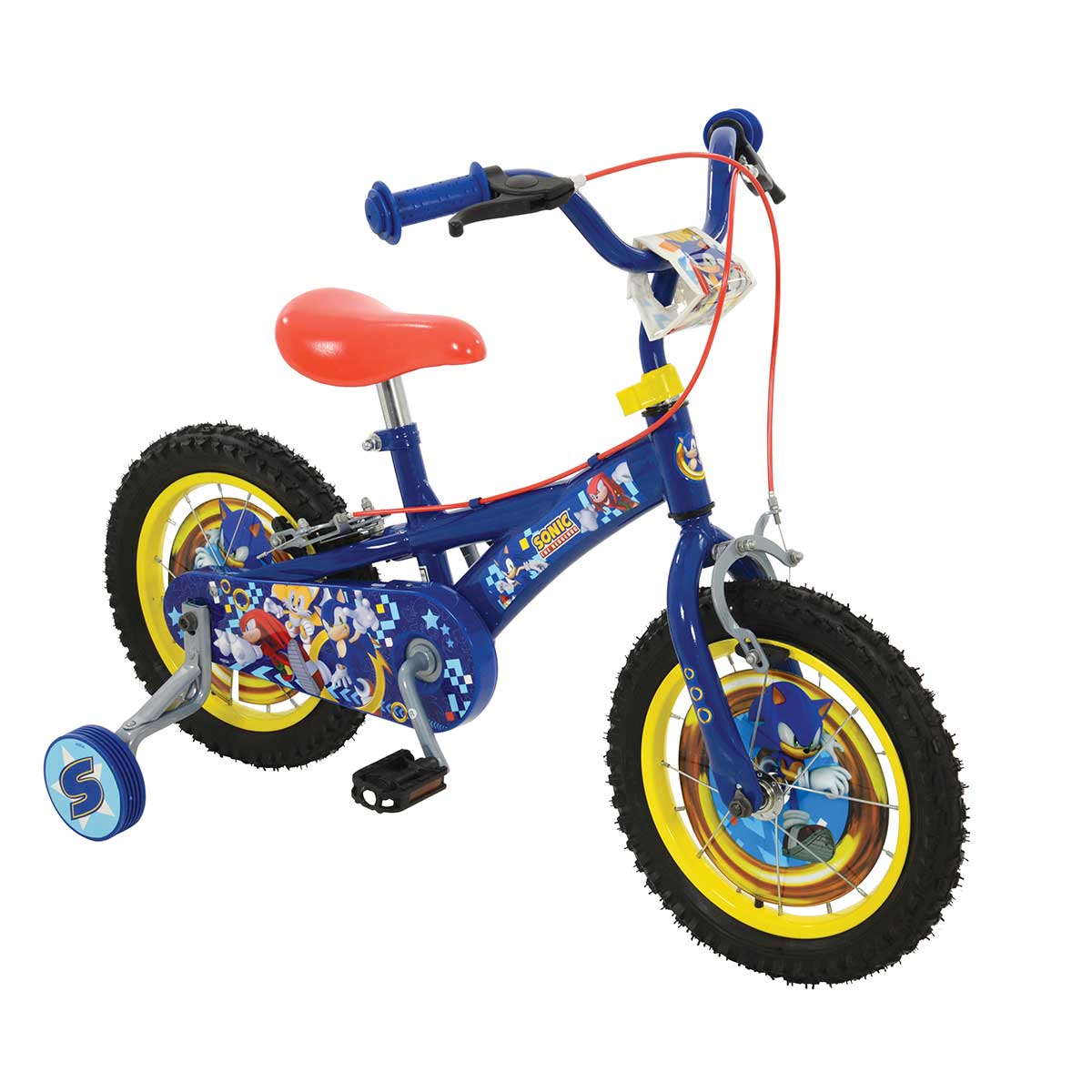 Sonic 14-Inch Kids Bike & Stabilisers - Officially Licensed Sonic Bicycle - Sturdy Steel Frame, Enclosed Chainguard, Front and Rear Brakes - Adjustable Handlebar & Seat Height - For Children Ages 3+