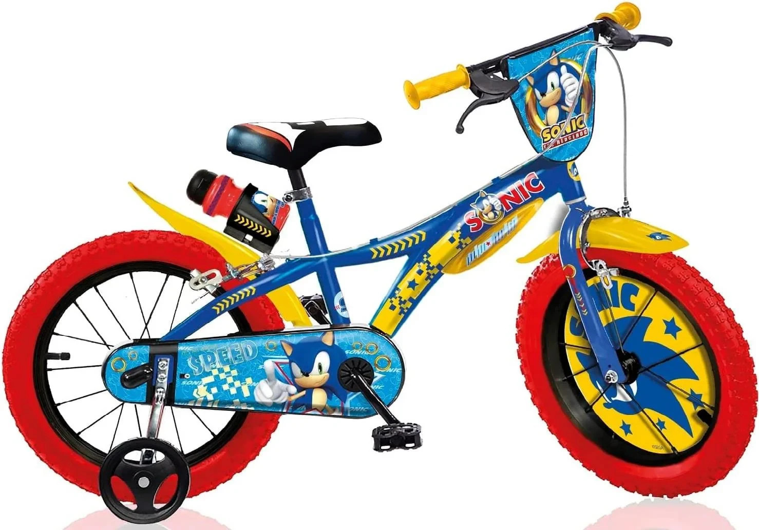 Dino Bikes Bikes, 614-SC Kids Bike Bicycle, Sonic The Hedgehog, 14 inch with training wheel stabilisers and drinks bottle, suits child 4-7 Years, Blue,