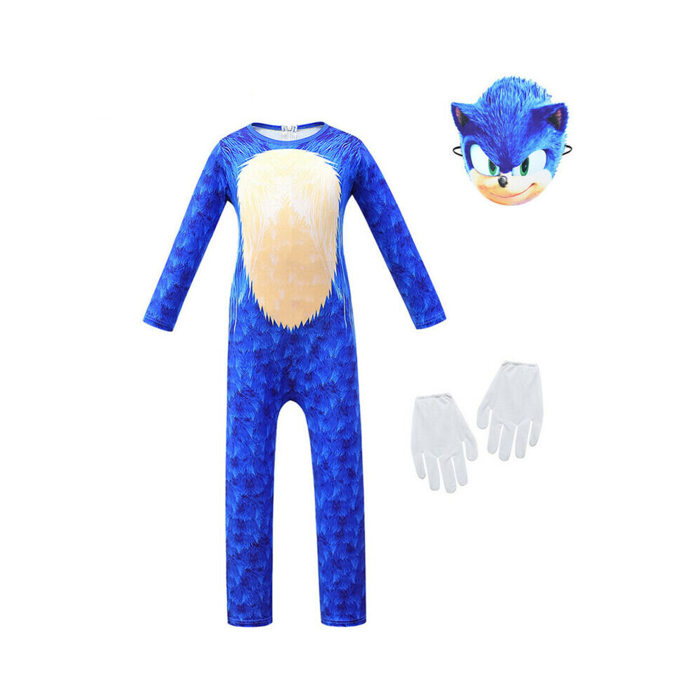 (Boy Blue, 9-10 Years) Sonic The Hedgehog Costume Cosplay Boy Kids Jumpsuit Mask Gloves Fancy Dress Set