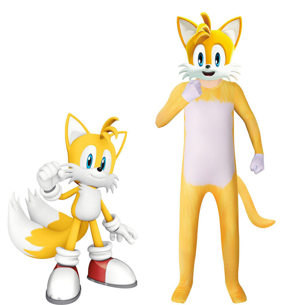 (140cm) Sonic The Hedgehog Costumes Fox Tail Cosplay Fancy Dress Kids Halloween Jumpsuit Headgear Outfits