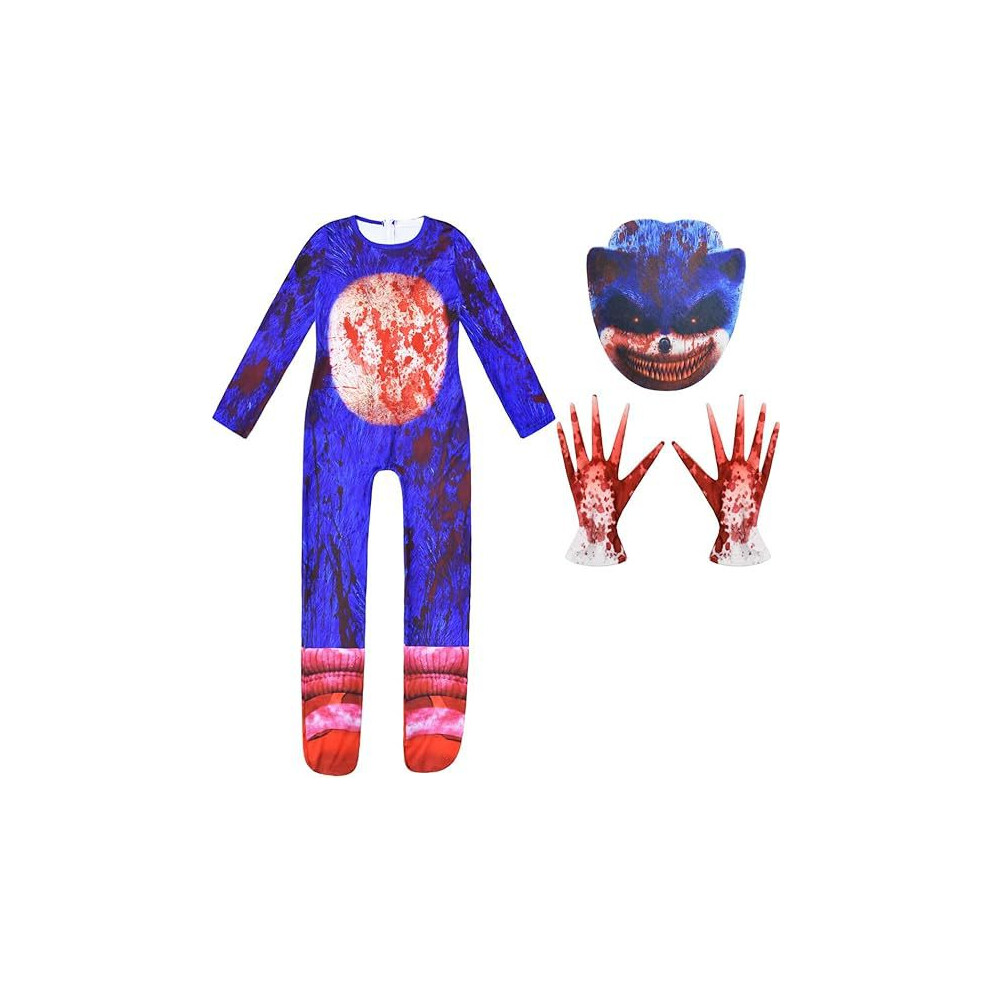 (Blue, 130cm) Sonic Cosplay Costume Bodysuit Jumpsuit Fancy Dress Halloween Costumes