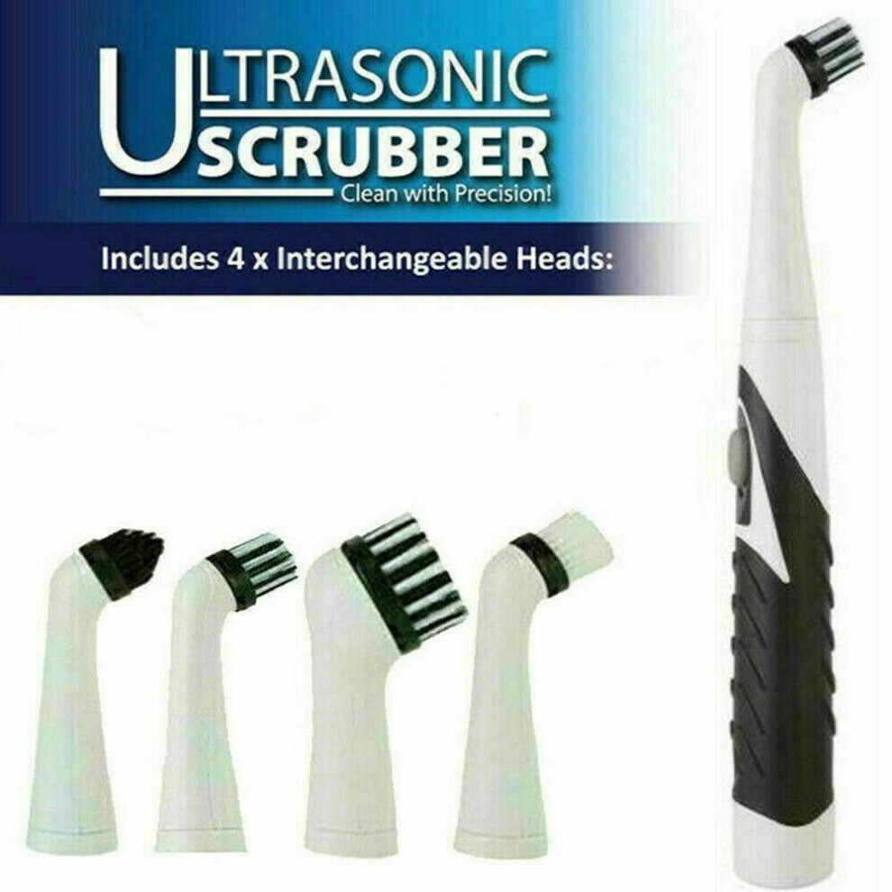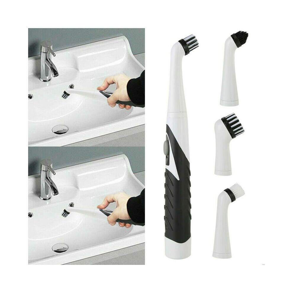 Easy Home Cleaning Sonic Scrubber Electric Brush Kitchen Bathroom With 4 Heads