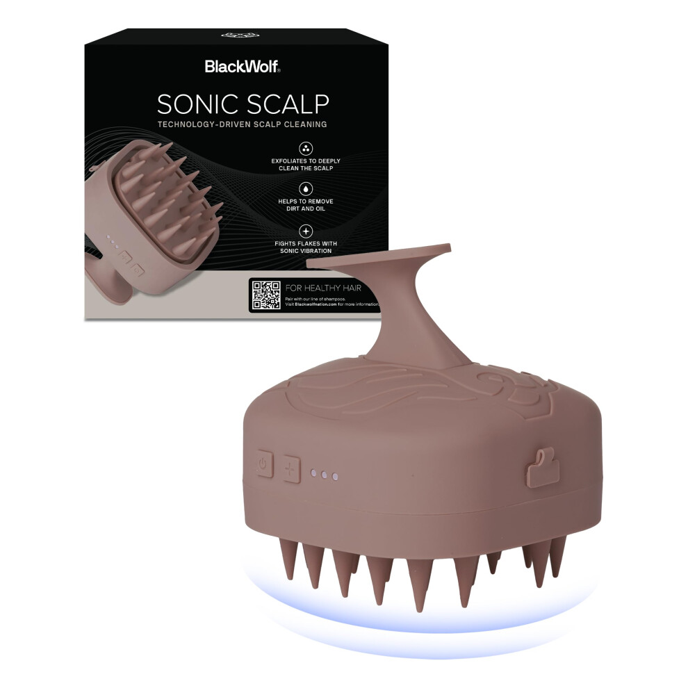 Black Wolf Sonic Scalp Scrubber (Taupe) - Hair & Scalp Massager Brush with 3-Speed Oscillation - Rechargeable Scalp Care Comb with Soft Silicone