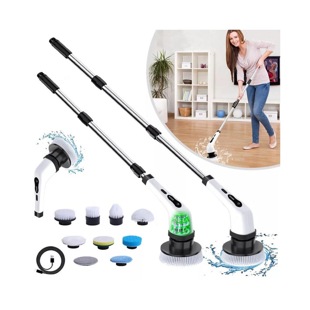 (Default) Electric Spin Scrubber Cordless Bathroom Cleaning Brush with 9 Heads & Toilet Attachment 2-Speed Sonic Scrubber for Tile Shower & Floors