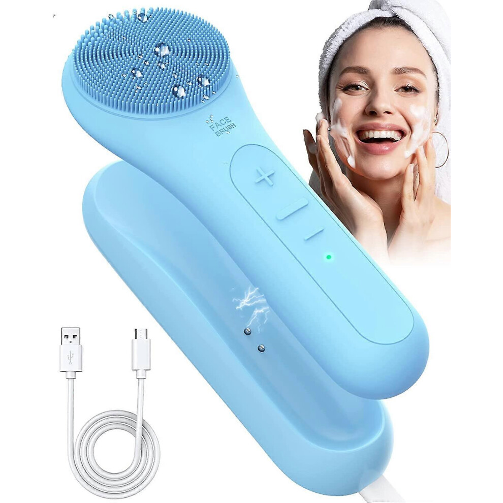 (As show, One size) Sonic Silicone Face Scrubber for Sensitive Skin Waterproof Electric Facial Cleansing Brush with Base,Inductive Charging Face Exfol