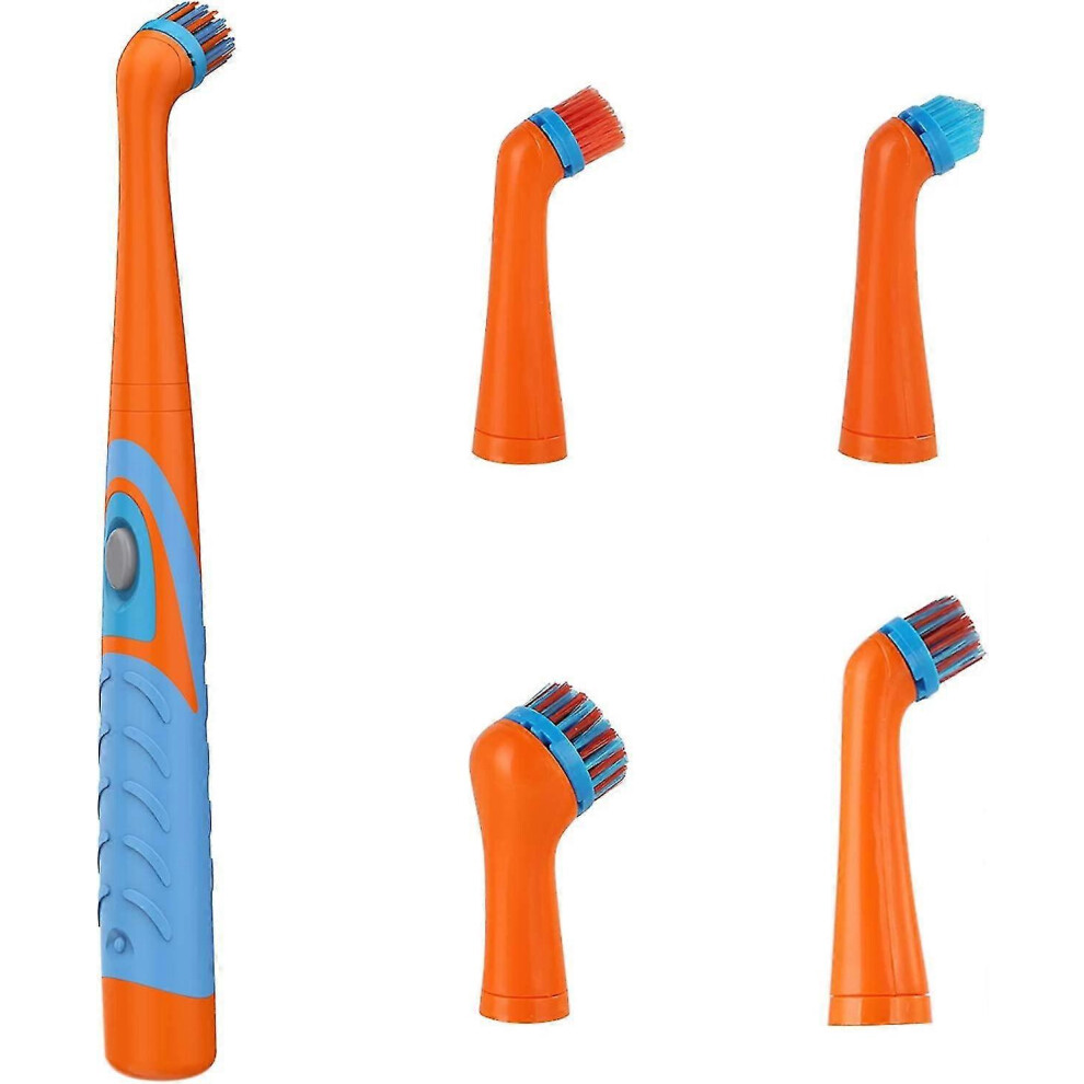 (Orange White) Sonic Scrubber Electric Cleaning Brush Ultrasonic Dust Cleaner with 4 Heads Set