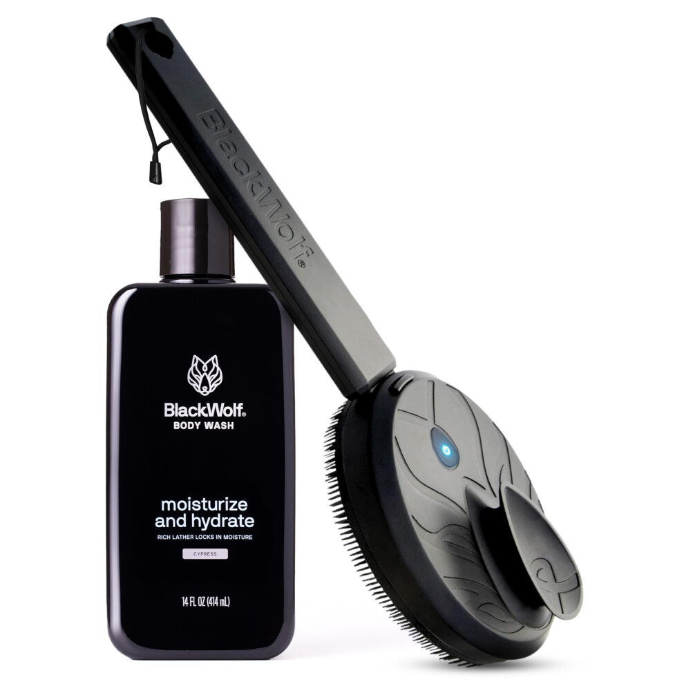 Black Wolf Sonic Scrubber Pro & Moisturizing Body Wash Set - Men's Shower & Bathroom Essentials Gift Set for Dry Dehydrated & Sensitive Skin -