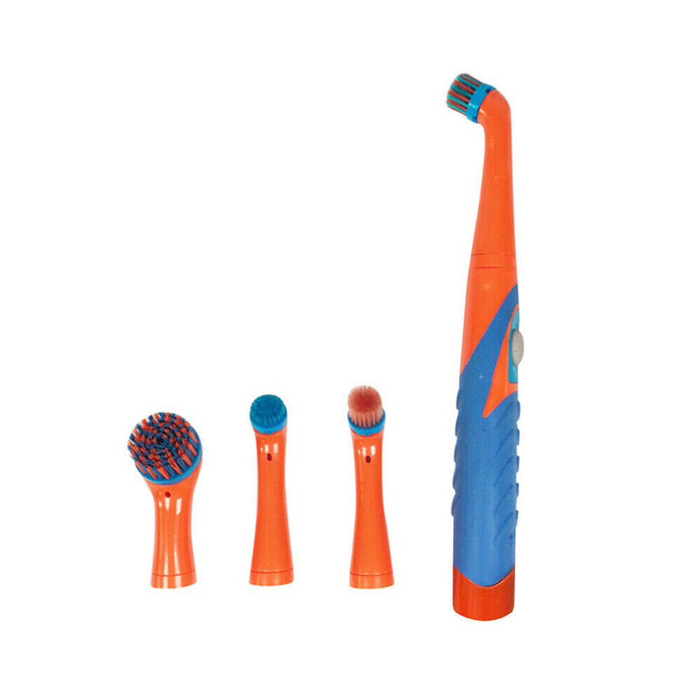 (Orange White) Super Sonic Scrubber Cleaning Electric Brush House Help Kitchen Bathroom 4 in 1