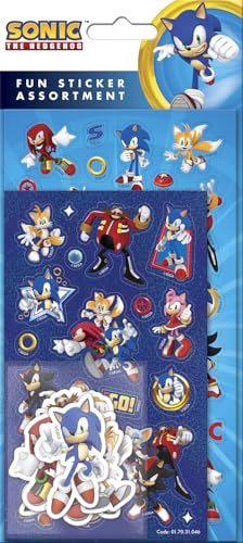 Sonic The Hedgehog Assortment Pack of Stickers, Three Types of Stickers, 50+ Stickers in Total, Great Stocking Filler and Christmas Gifts, Stickers are reuseable on Non-Porous Surfaces, Age3+