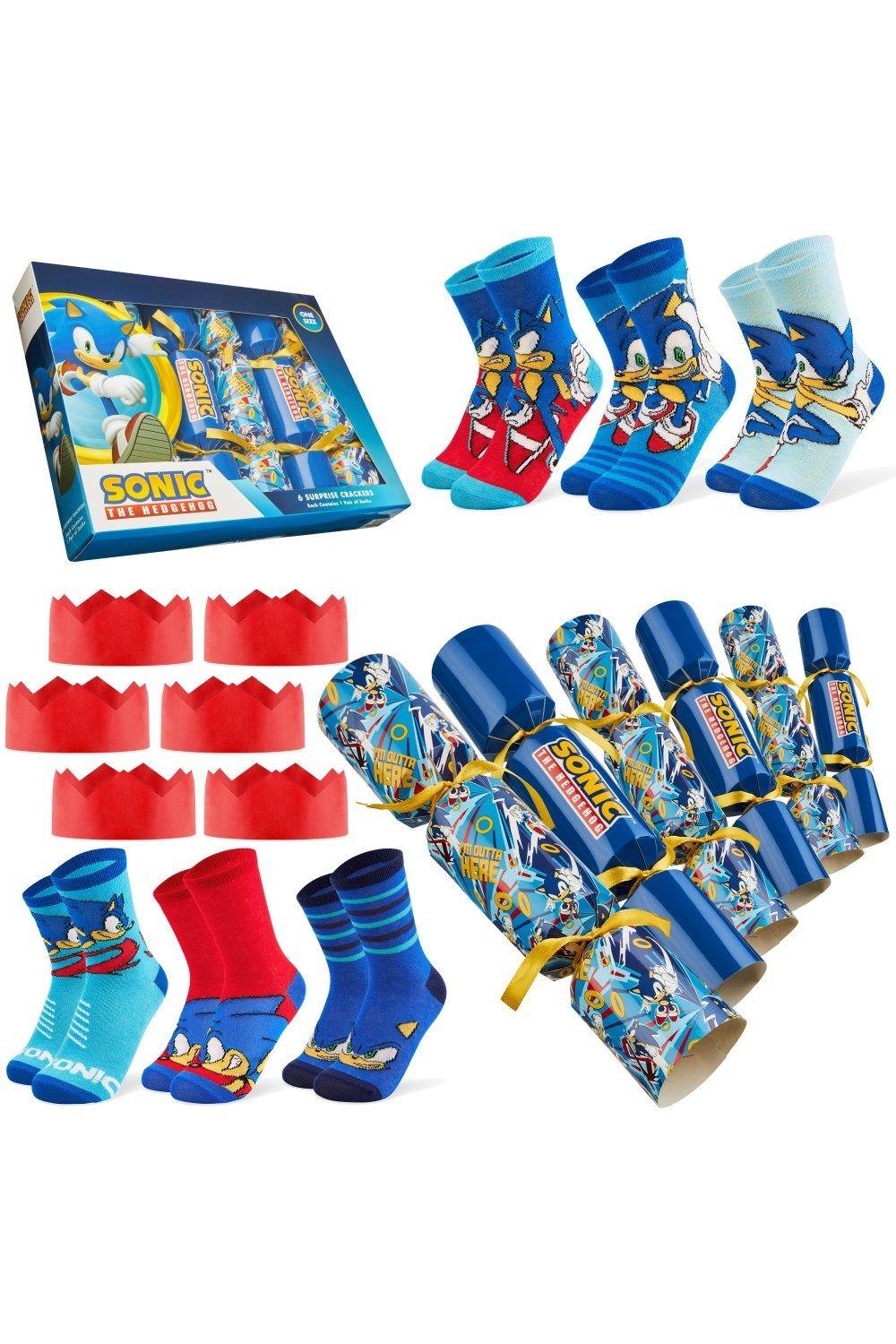 Sonic The Hedgehog Luxury Christmas Crackers, Set of 6 Deluxe Xmas Crackers with One Size Crew Socks for Kids, Fun Novelty Christmas & Party Gifts