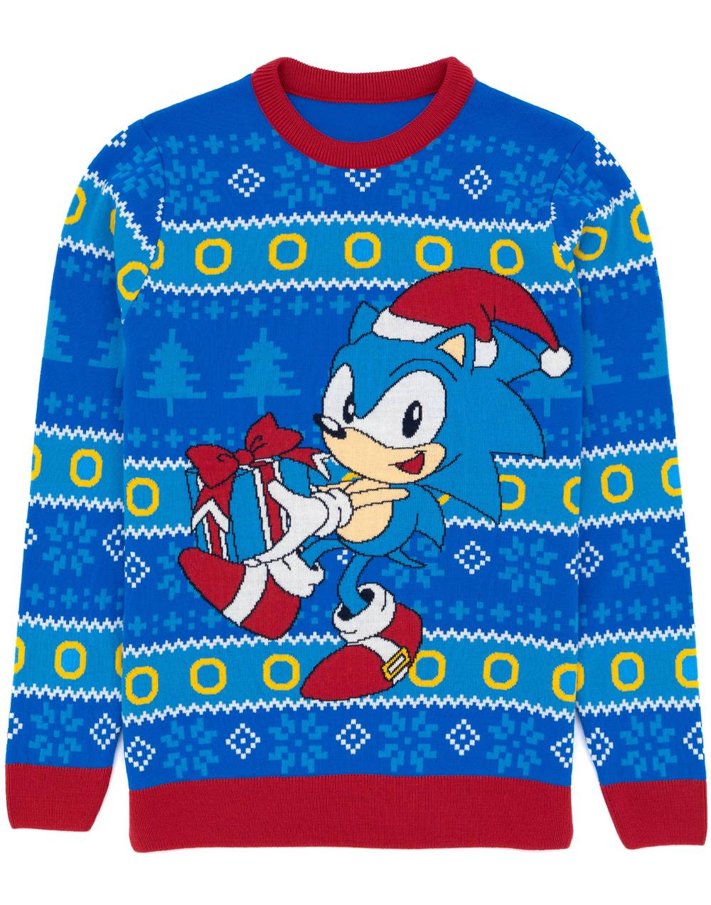 Official Sonic the Hedgehog Christmas Jumpers - Ugly Novelty Gifts Men Or Women Xmas Jumper - Officially Licensed SEGA Unisex Knitted Sweater Design, Sonic, XS